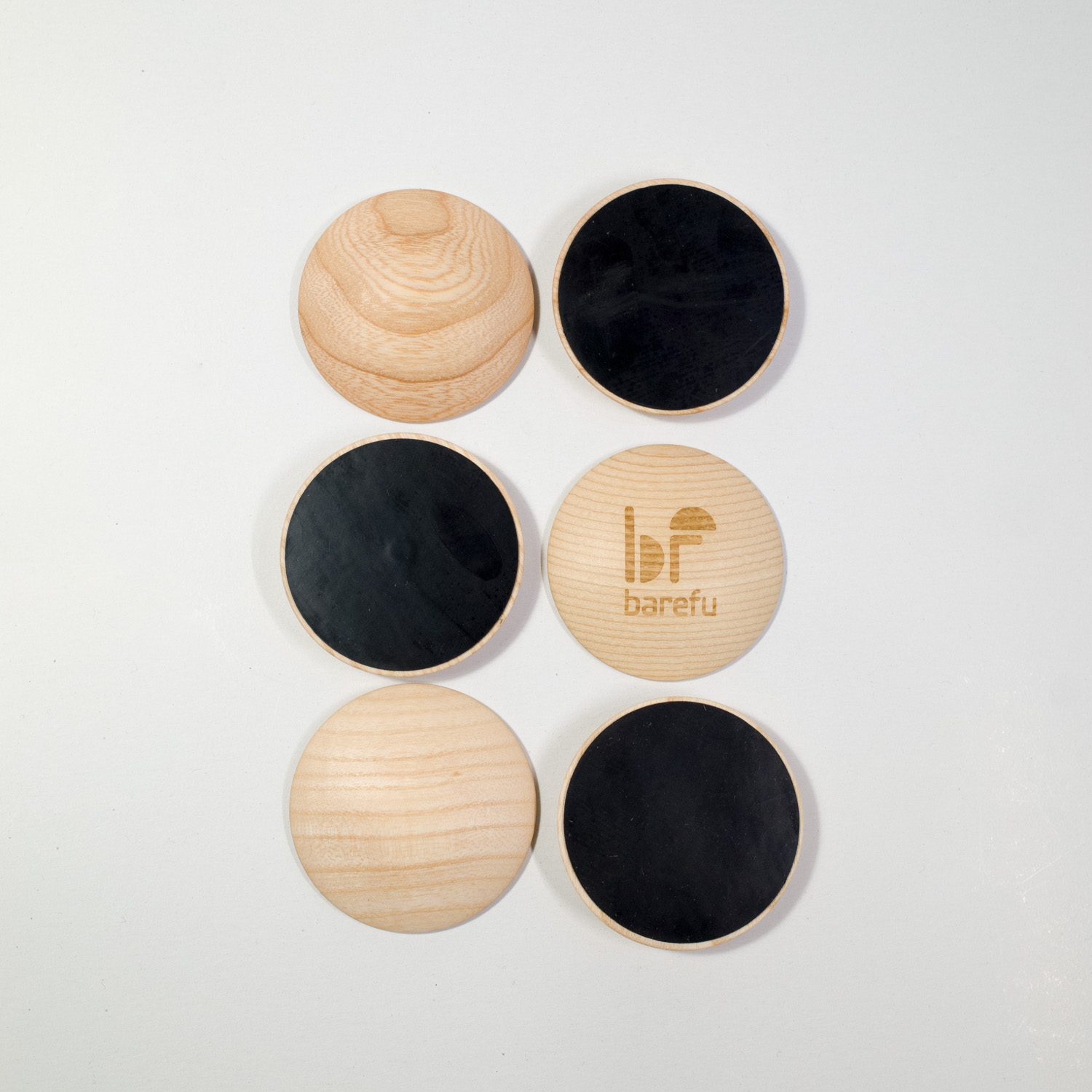 barefu DOTS so izdelani iz jesenovega lesa, ki je močan in hkrati prožen. Z ustrezno površinsko obdelavo je tudi antibakterijski, topel in prijeten na dotik. Ploščice so obdelane z oljem, ki pušča pore odprte, zato les ohrani svoje lastnosti. Na spodnji strani DOTS play ploščic je protizdrsna guma, s katero se pritrdijo na tla in se ne premikajo. Ko sprostite pritisk, jih lahko enostavno prestavite na drugo mesto. Če jih združite, magnetna sila poskrbi, da ostanejo skupaj. Barefu DOTS so izdelani na Slovaškem iz slovaškega lesa in so lično zapakirani v ekološko embalažo. Material: Les