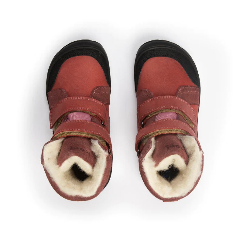 Nova izboljšana različica zimskih Milo škornjev. raven (zero drop), tanek in prožen podplat širok prstni del zaščita na prstnem delu protizdrsen podplat preprosto zapenjanje z ježki kovinski obročki brez niklja odstranljiv recikliran vložek primerni za srednje do široka široka stopala lepo se fiksirajo tudi na ožje gležnje Izdelani so iz kombinacije hydro in semiš usnja ter imajo toplo volneno podlogo. Dodana je Tex membrana, podplat pa je za bojšo vzdržljivost na zgornji dell čevlja prišit. Čevlji imajo nedrseč in raven podplat iz naravne gume. Santi podplat ima dodatno poglobljen profil, ki nudi odličen oprijem, hkrati pa je prožen. Prstni del je širok in zagotavlja izjemen občutek pri hoji ter zdrav razvoj stopal. Podloga iz merino volne z vodoodporno membrano bo poskrbela, da bodo stopala ostala topla tudi v mrzlih dneh. Zapenjanje na ježke omogoča dobro fiksiranje čevljev.
