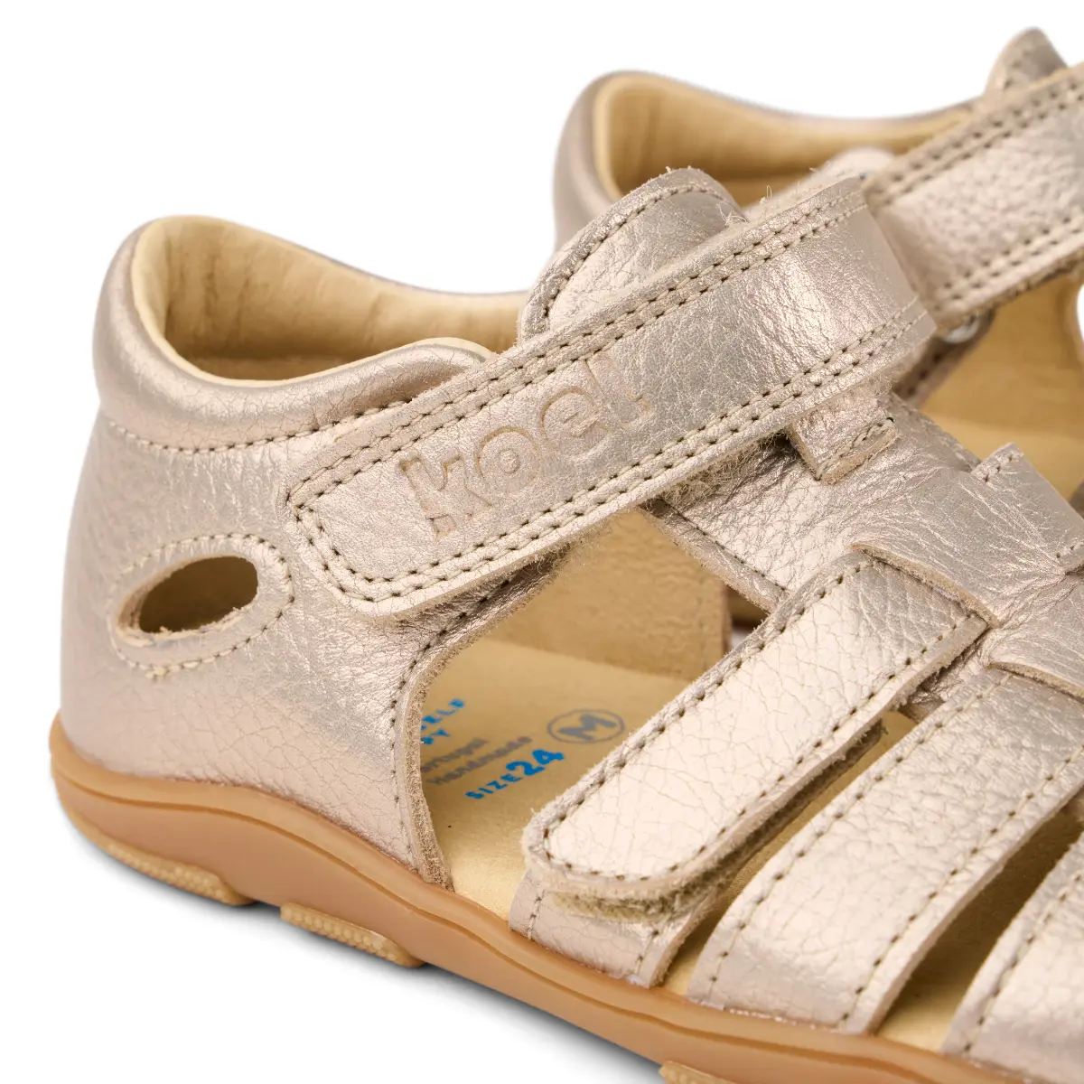 Ova bosonogi sandali so odlična rešitev za vroče poletne dni. zunanji material: usnje notranji material: usnje (brez kroma) podplat: naravna guma (5 mm) prožen podplat s poglobljenim profilom širok prstni del protizdrsen podplat elastične vezalke s stoperjem in ježek omogočata dobro fiksiranje odstranljiv vložek primerni za srednje do široka stopala veganski Ova sandali imajo nedrseč in raven podplat Maria Bare, ki je izdelan iz naravne gume. Zgornji del je iz mehkega usnja, v notranjosti pa podloga brez kroma, ki je nežna do otroških stopal. Velcro trakovi omogočajo enostavno obuvanje ter dobro fiksiranje. Koel čevlji so oblikovani tako, da se z lahkoto upognejo, imajo širok prstni del in anatomsko oblikovan tanek podplat, ki omogoča odličen stik s tlemi.