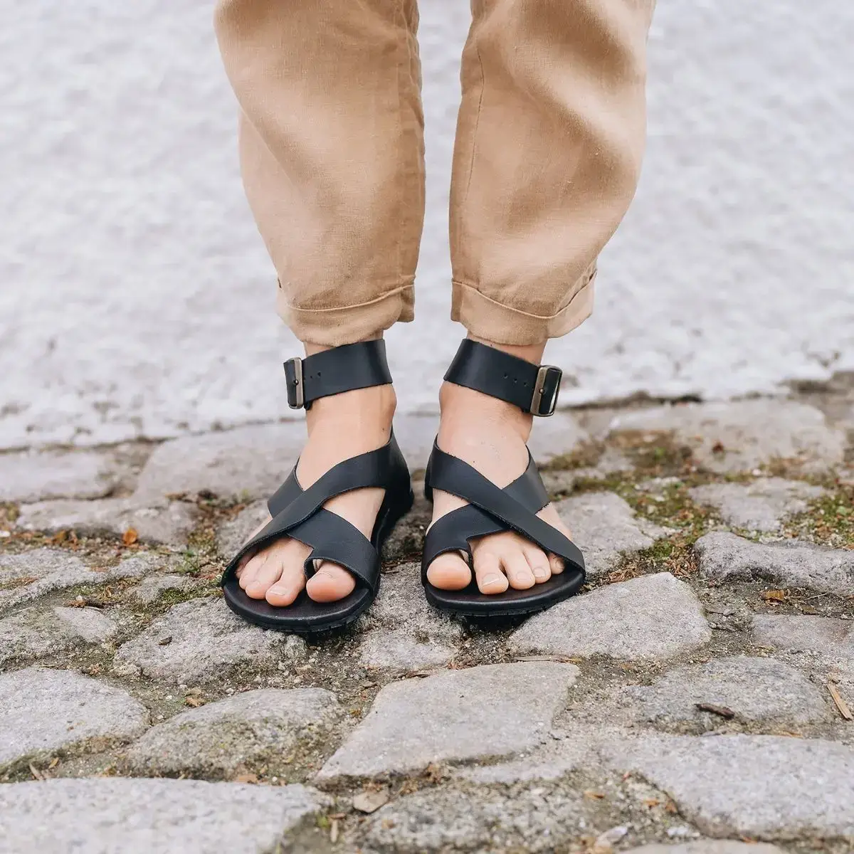 Lahki poletni sandali iz naravnih materialov.