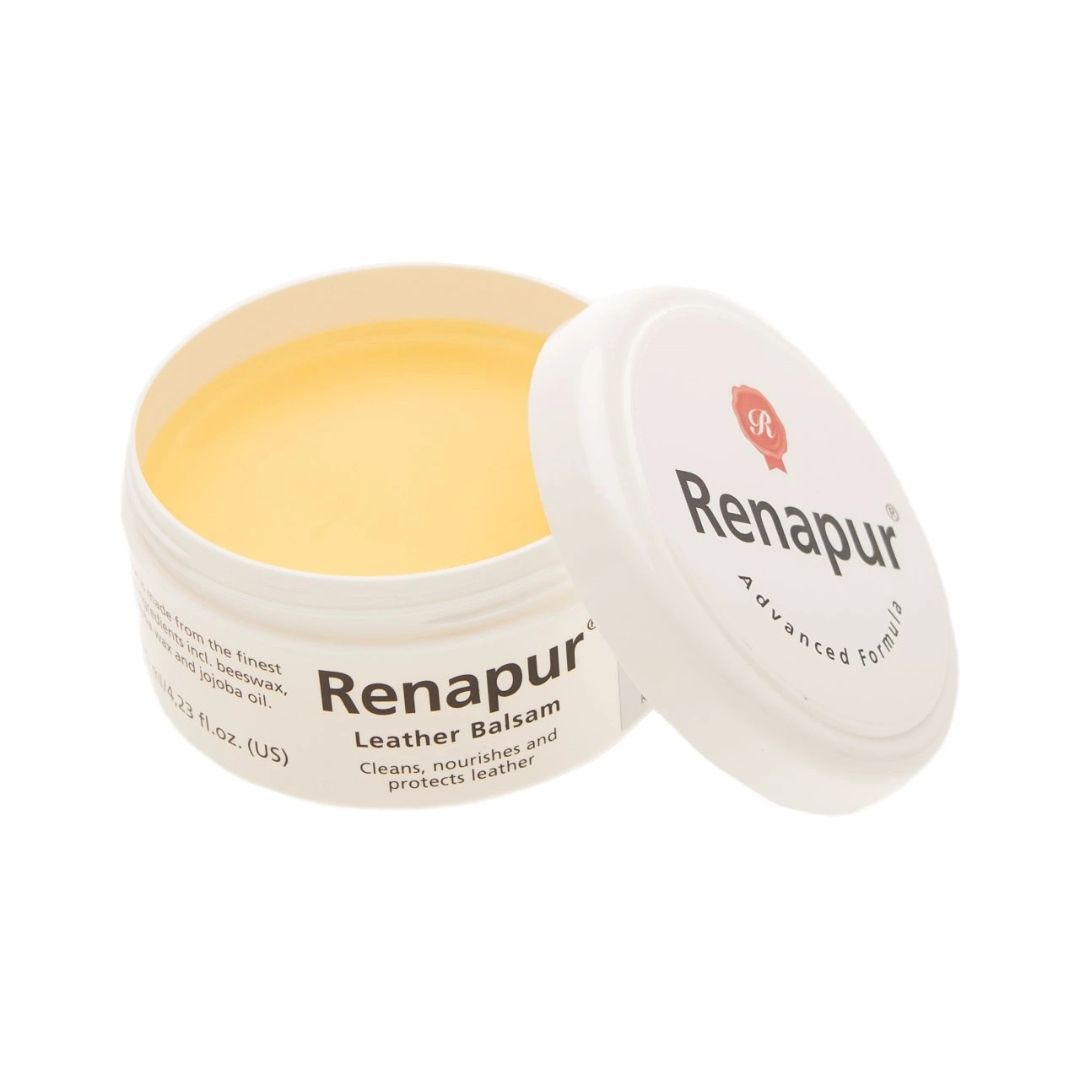 Uporaba Najprej se odstranite večjo umazanijo s čevljev. Balzam na čevlje nanesite z gobico, zadostna je majhna količina. Z nežnimi krožnimi gibi balzam enakomerno razporedite po celotni površini čevlja. Balzam se bo hitro vpil v usnje. Odvečni balzam obrišite s čisto krpo. Čevljev ni treba polirati. Opomba: Renapur Leather Balsam je treba pred uporabo vedno preizkusiti na majhni neopazni površini. Ne uporabljajte ga na semišu ali drugih vrstah brušenega usnja.