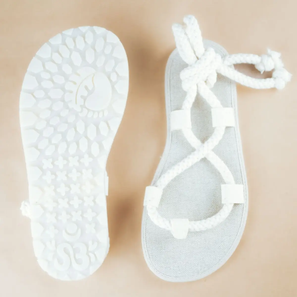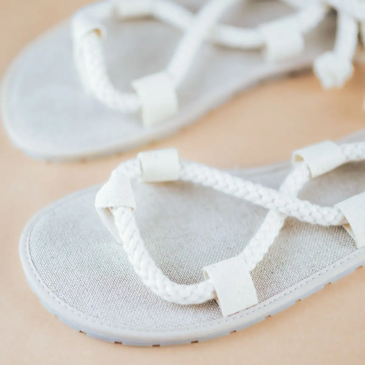 Lahki poletni sandali z laneno podlogo in vrvjo iz surovega bombaža. trakovi: bombaž zgornji del podplata: lan + kokosova vlakna podplat: naravna guma tanek in prožen podplat (5,5 mm) čevlji se s paščki fiksirajo in prilagodijo na stopala različnih volumnov primerni za srednje do široka stopala veganski Trakovi so napeljani skozi 5 točk, kar omogoča prilagoditev različnim volumnom stopal. Sandale lahko prilagodite z različnimi trakovi, saj so zamenljivi. Dodatni trakovi so na voljo ločeno. Skupna debelina podplata, vložka in podloge je 10 mm. Sestavljen je iz treh plasti, naravnega kavčuka (5,5 mm), koskosovih vlaken (3-4 mm) in podloge. Kavčuk je nedrseč in nudi odličen oprijem, kokosova vlakna so termoregulacijska, antibakterijska in nudijo udobje, material, ki je v neposrednem stiku s stopalom pa zagotavljajo mehak in prijeten občutek pod nogami, nevtralizira znoj, preprečuje drsenje in pomaga uravnavati temperaturo. Te tri plasti nudijo tudi termoregulacijo in ščitijo vaša stopala pred vročino asfalta.