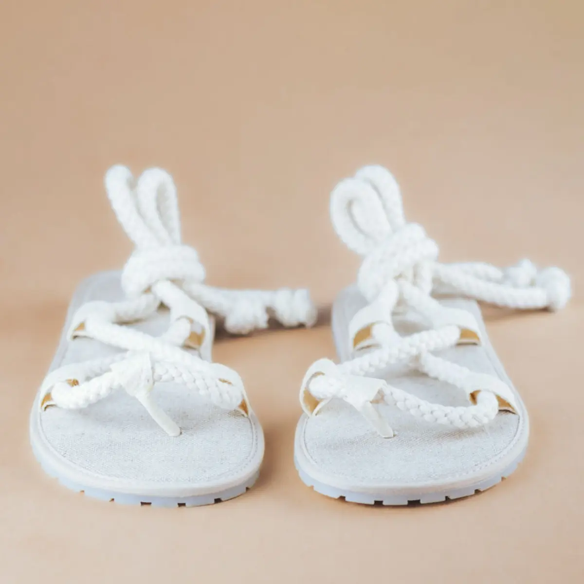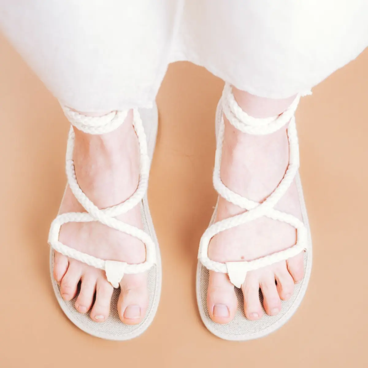 Lahki poletni sandali iz naravnih materialov.