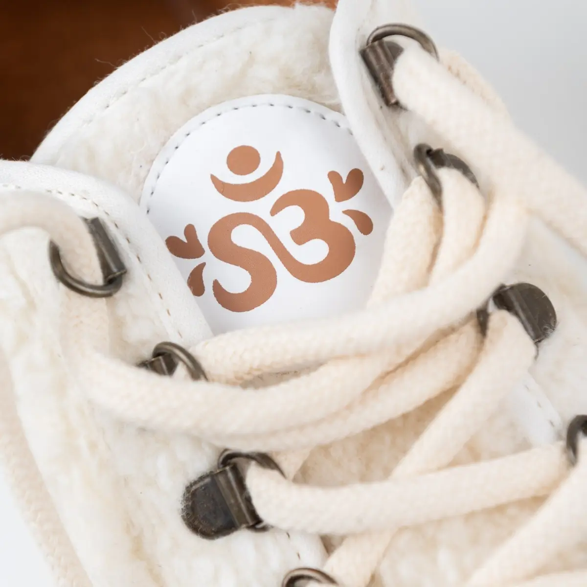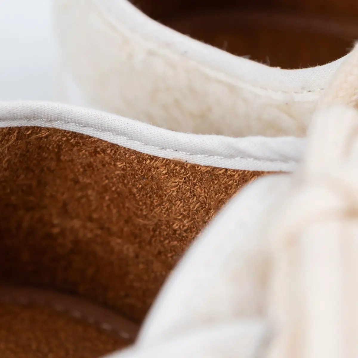 Izdelane iz bombažnega sherpa flisa v bež barvi, ki je zaradi udobne teksture in trajnosti zelo priljubljen. Bombažni rob in gumijasti trak v krem barvi zagotavljata nežen, harmoničen kontrast. Podložene so s frotirjem iz bambusa v barvi terakote. Vsi čevlji Sambas the Bambas so zasnovani in ročno izdelani v Španiji. Narejeni so iz lokalnih, naravnih in kakovostnih veganskih materialov.