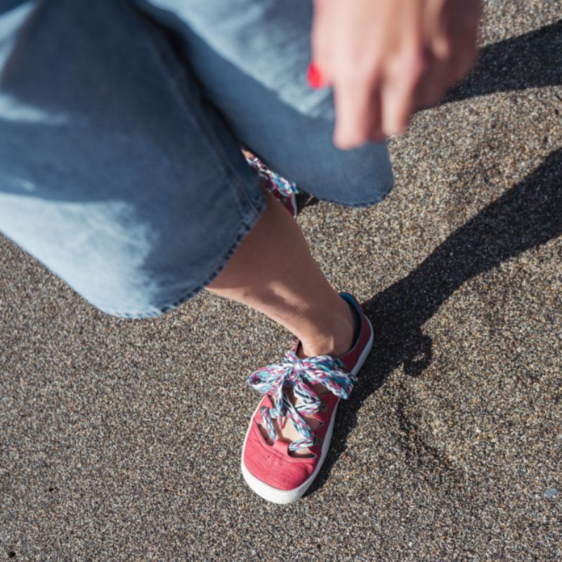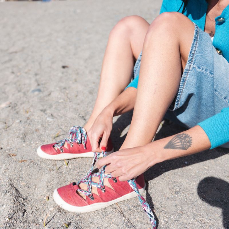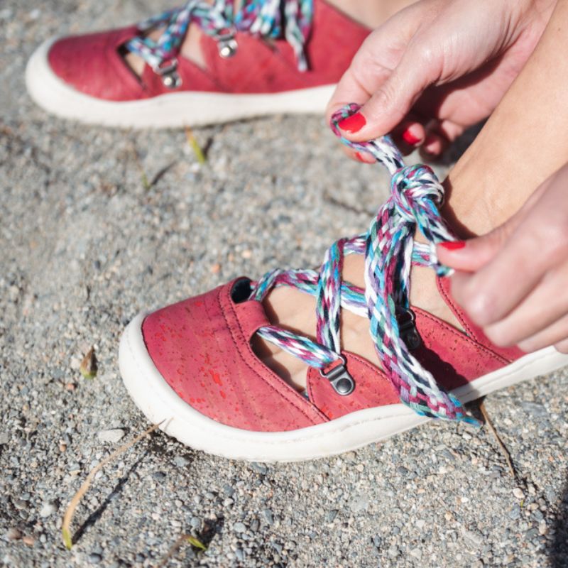 Sambalia bosonogi čevlji iz plutev v zabavni barvni kombinaciji. zunanji del: pluta podloga: organski bombaž podplat: rastlinska guma (TPR) vložek: kokosova vlakna vezalke: bombaž raven podplat (zero-drop) širok prstni del tanek in prožen podplat (4mm) odstranljiv vložek (3-4 mm) čevlji se z vezalkami dobro fiksirajo in prilagodijo stopalom različnih volumnov primerni za srednje do široka stopala izdelani v Španiji veganski Na nartu so odprti in se zavežejo z vezalkami, zaradi česar so drugačni, hkrati pa se odlično fiksirajo na stopala. Pletene bombažne vezalke dodatno pospestrijo čevje. Podplati so tanki (4 mm) in prožni. Narejeni so iz TPR gume, ki je pridobljena iz 100 % rastlinskih olj. Odstranljivi vložki iz kokosovih vlaken so naravno vpojni in termoregulirajo. Idealni so za prehod na bosonogo obutev, prilagajanje velikosti ali zagotavljanje dodatne zaščite in udobja. Sambas the Bambas čevlji izpolnjujejo vse lastnosti bosonogih čevljev in popolnoma posnemajo bosonogo hojo. Omogočajo prosto, udobno in naravno gibanje stopal brez kakršnihkoli omejitev.
