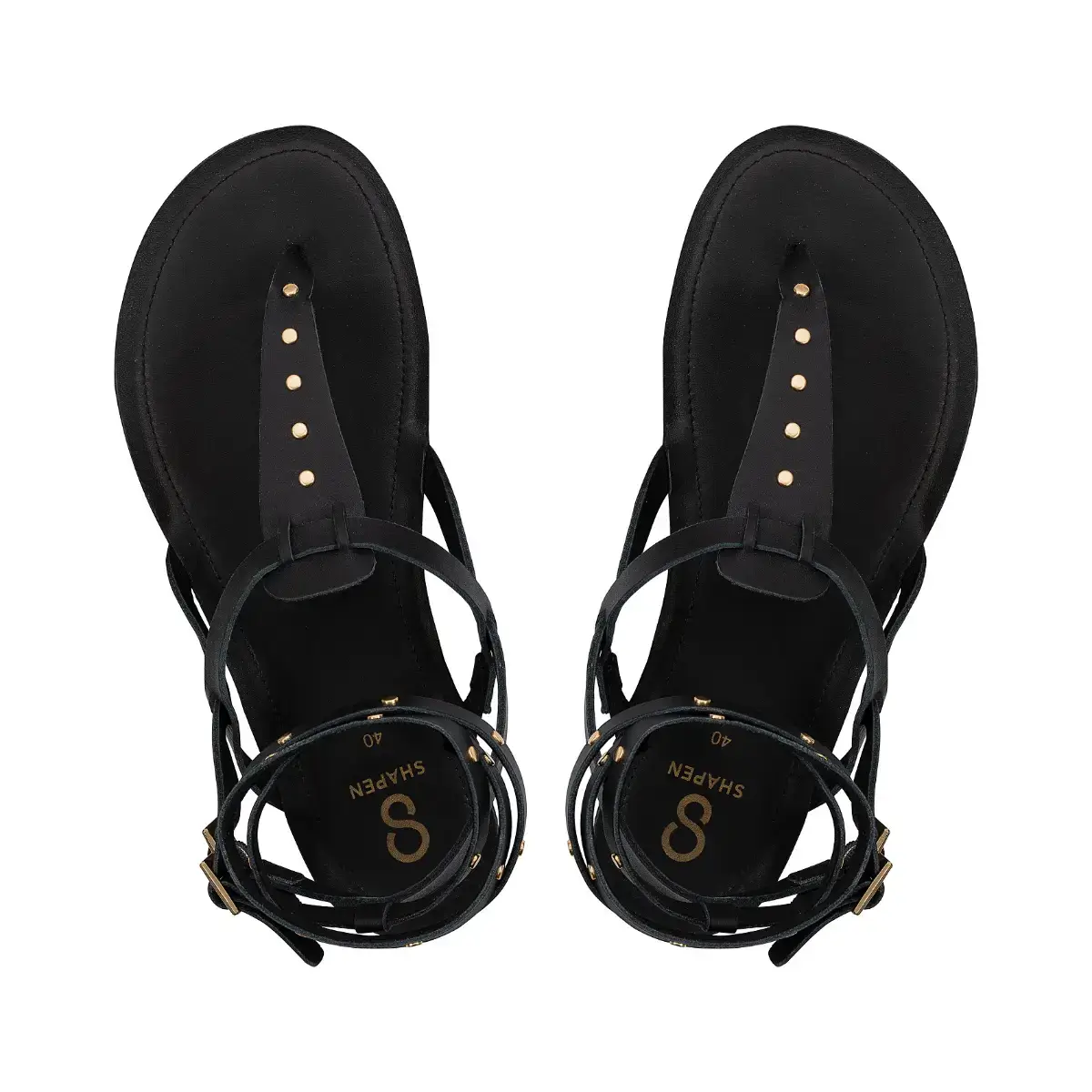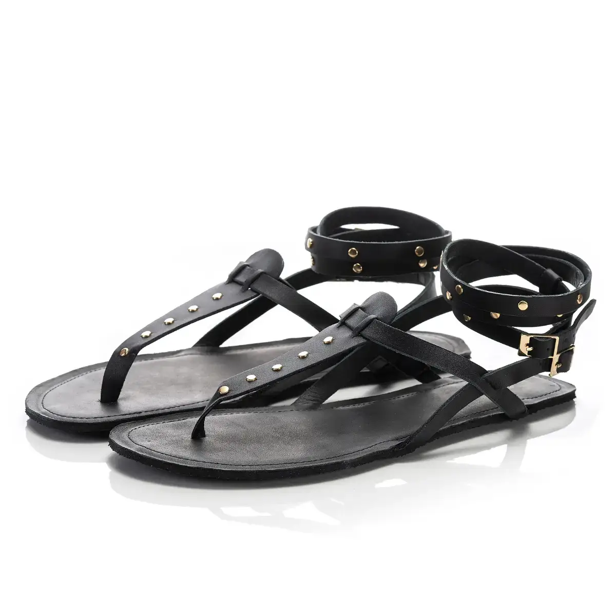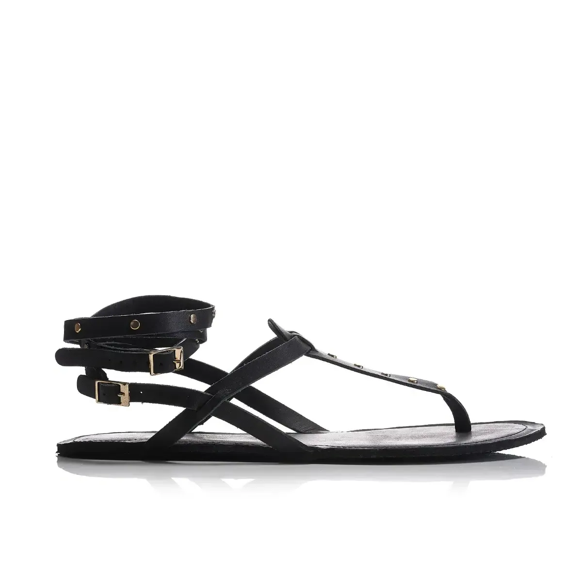 Grški bosonogi sandali z zlatimi zakovicami.