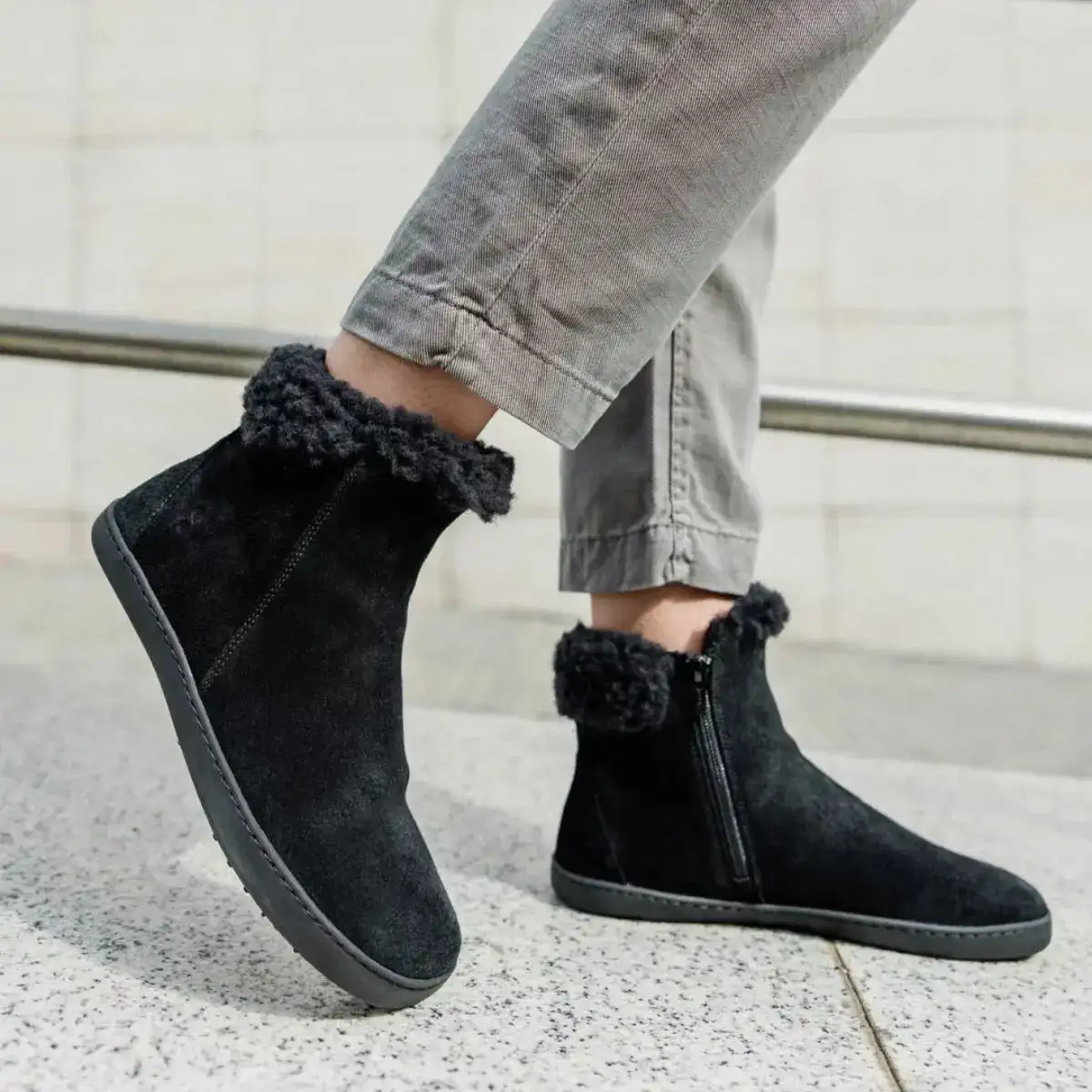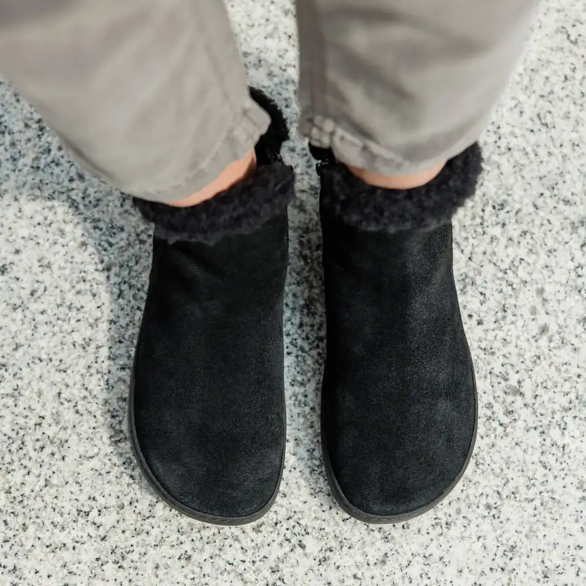 Elegantni zimski gležnjarji izdelani iz semiša in toplo podlogo.